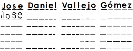 - Realizamos escritura del nombre y los apellidos por 5 repeticiones en el cuaderno de tareas