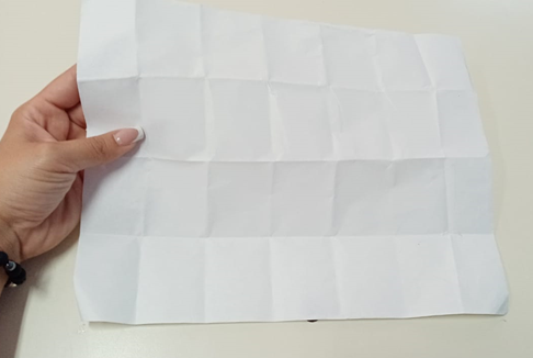 - Dobla una hoja de block de modo que salgan varios cuadritos del mismo tamaño.