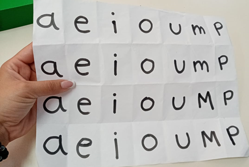 - En cada cuadrito con marcador escribe las vocales y consonantes M-P .